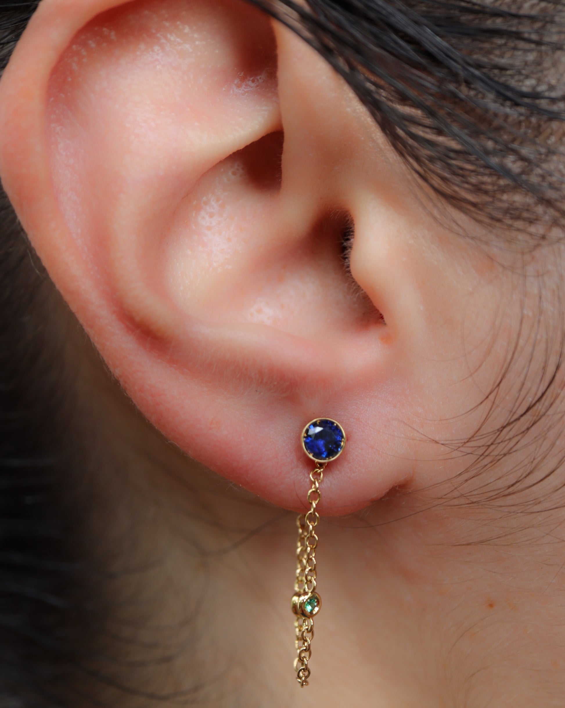 Catenina, impreziosita da dettagli luminosi, può essere agganciata a due orecchini a lobo oppure indossata singolarmente.